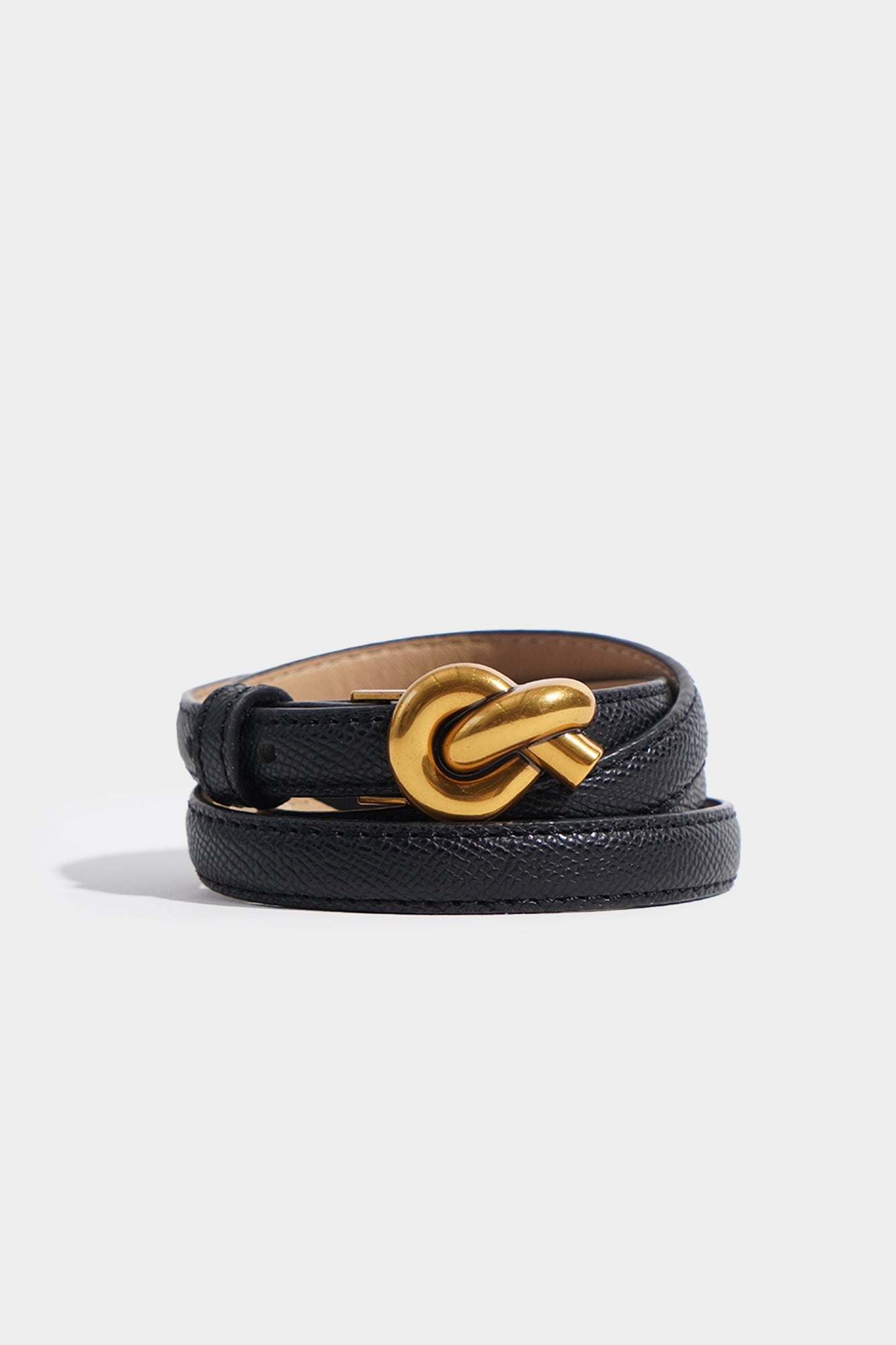 Designed by Vivanti, the Olympia Gold Buckle Belt presents a clean form anchored by considered hardware. Its smooth surface holds a precise line, leading to a subtly shaped buckle crafted with a warm gold finish. The balanced width and neat tip offer quiet structure. A subtle element for thoughtful dressing.
